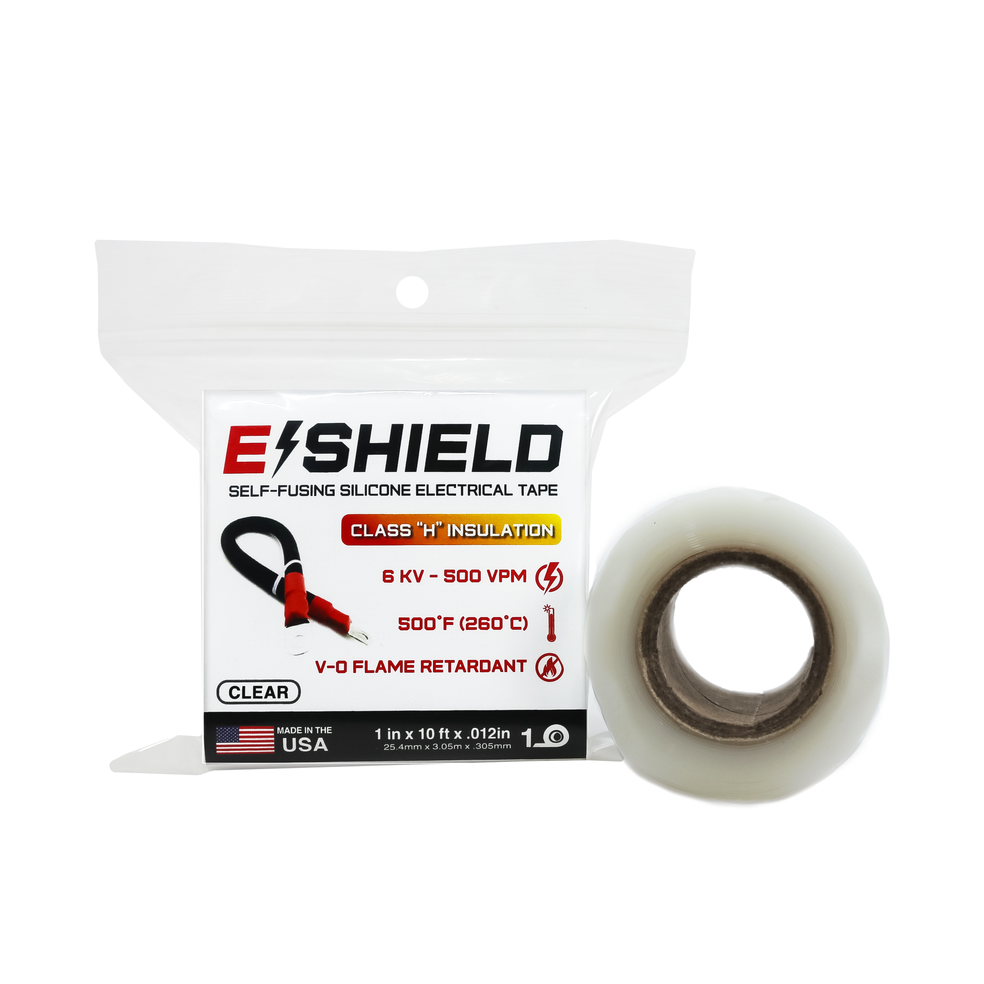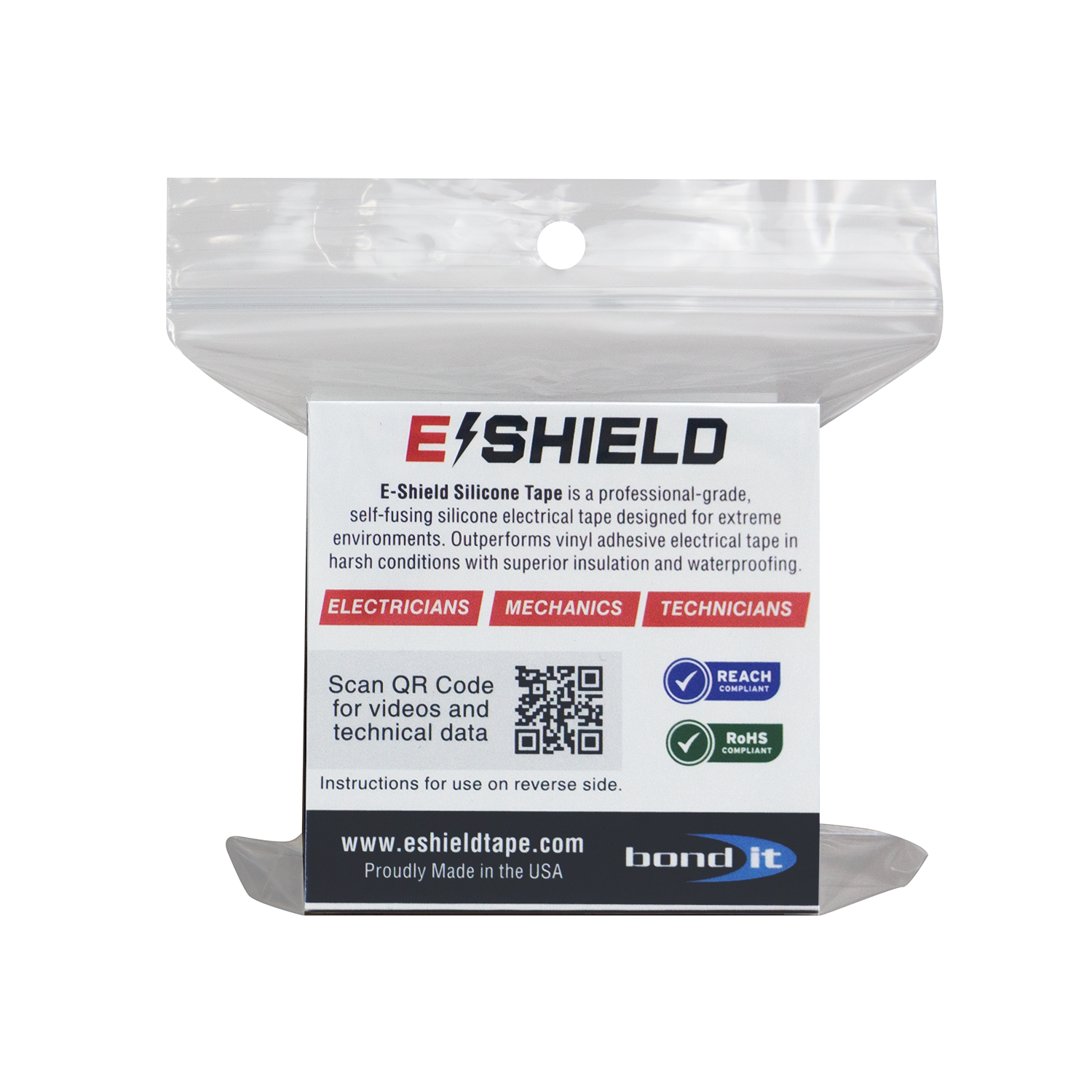 E-Shield Tape is a high-temperature arc and track-resistant, adhesive-free tape made of specially formulated self-fusing silicone that cures at room temperature - making it a tough and easy-to-apply replacement for heat shrink insulation and perfect for electrical connections and fittings.