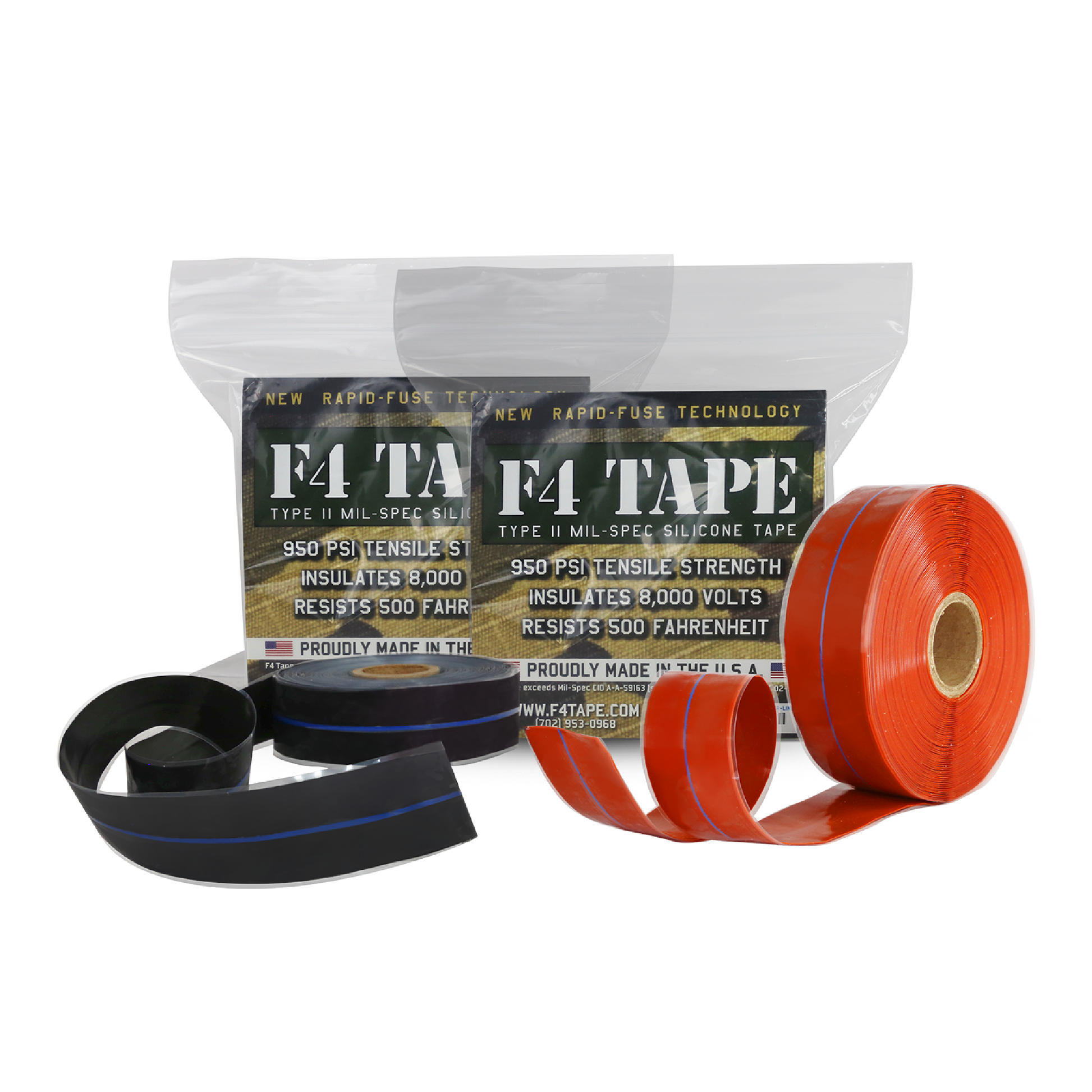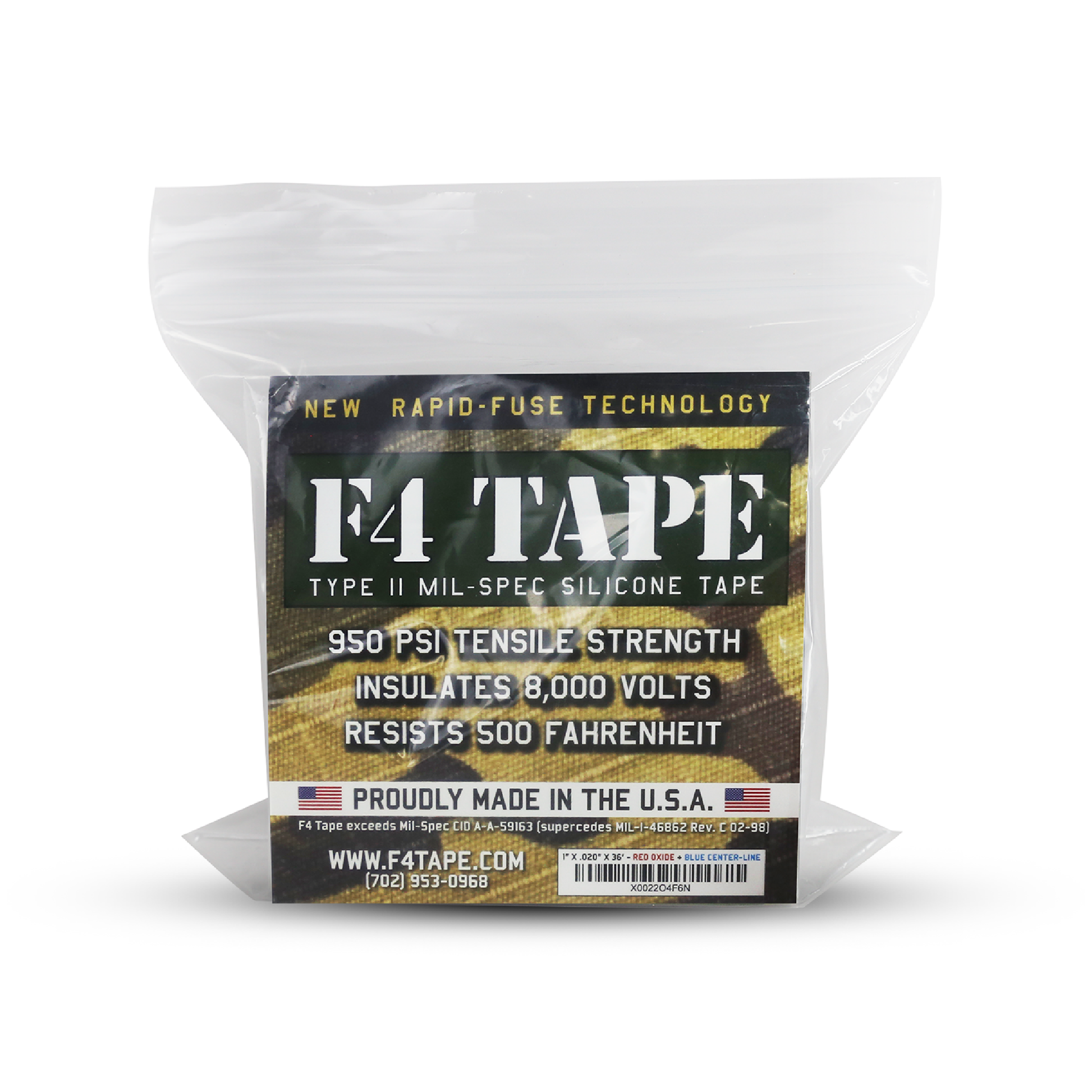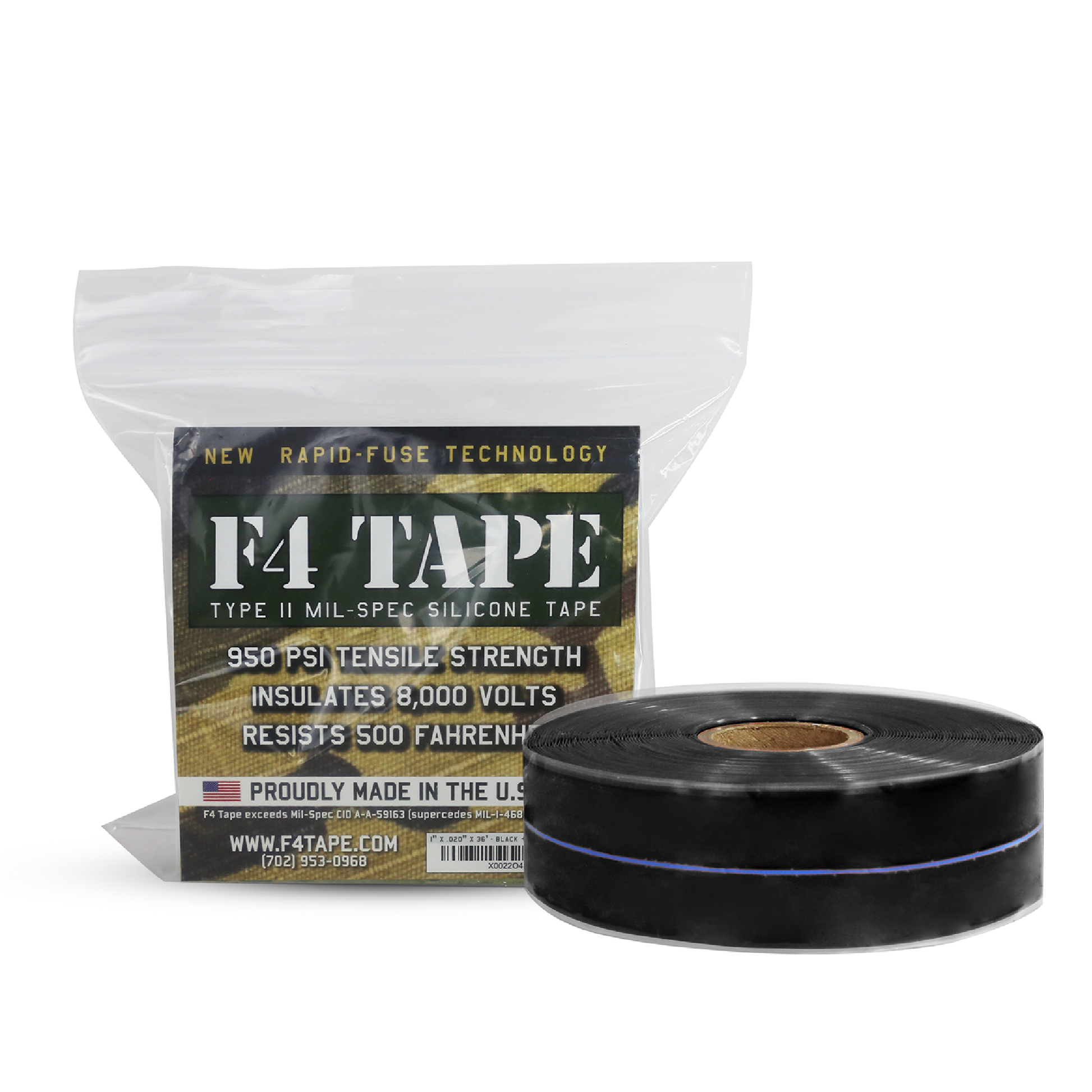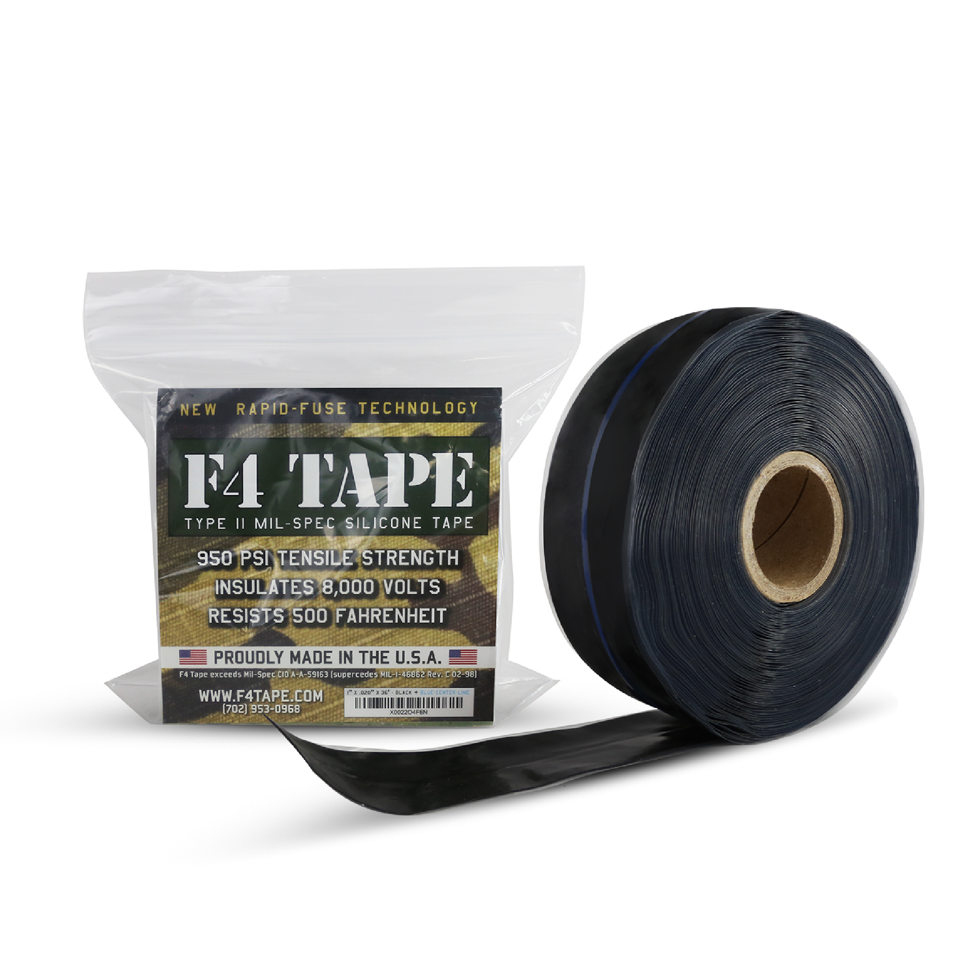 Uses: Insulate and protect wiring and connections. Waterproof connections and fittings. Replace shrink tape and shrink tubing. Wrap wires for safety and protection. Wrap tool handles, aircraft handles and knobs for a non-slip grip and emergency repairs on lines and hoses F4 Tape is lab tested and manufactured in the USA with extruded of a high-performance silicone elastomer. Available in the traditional military Red Oxide or Black color with blue guideline. Each roll is 1" wide x 36' long x .020" (20mil) thick.